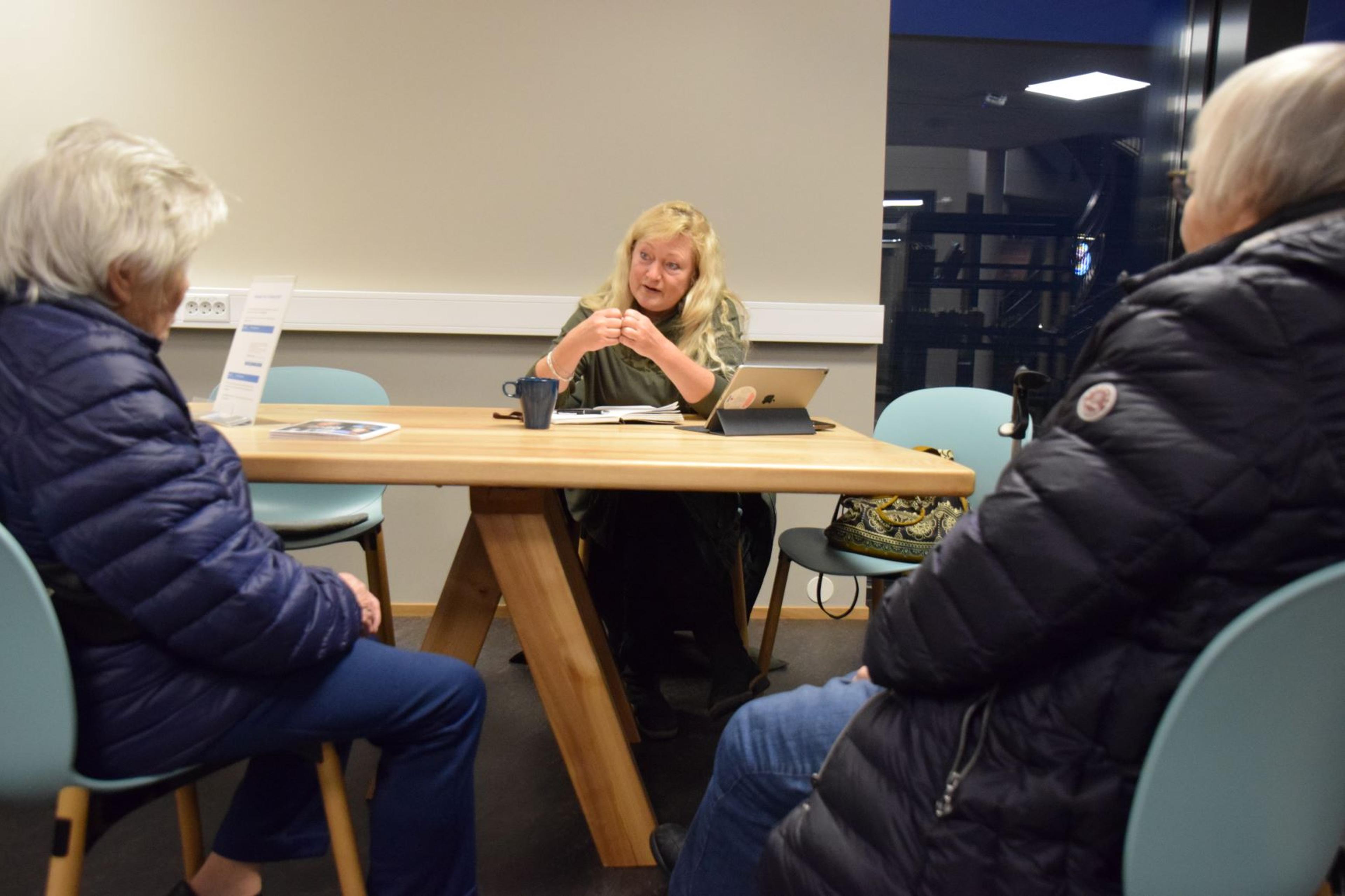 VELKOMMEN TIL RE! Ny-ordfører Anne Rygh Pedersen i nye Tønsberg kommune innrømmer at det er utfordrende tider i møte, men hun har trua. Spesielt etter den varme velkomsten til den aller første ordførerens time ved borgerbordet på Revetal bibliotek. Foto: Stian Ormestad.