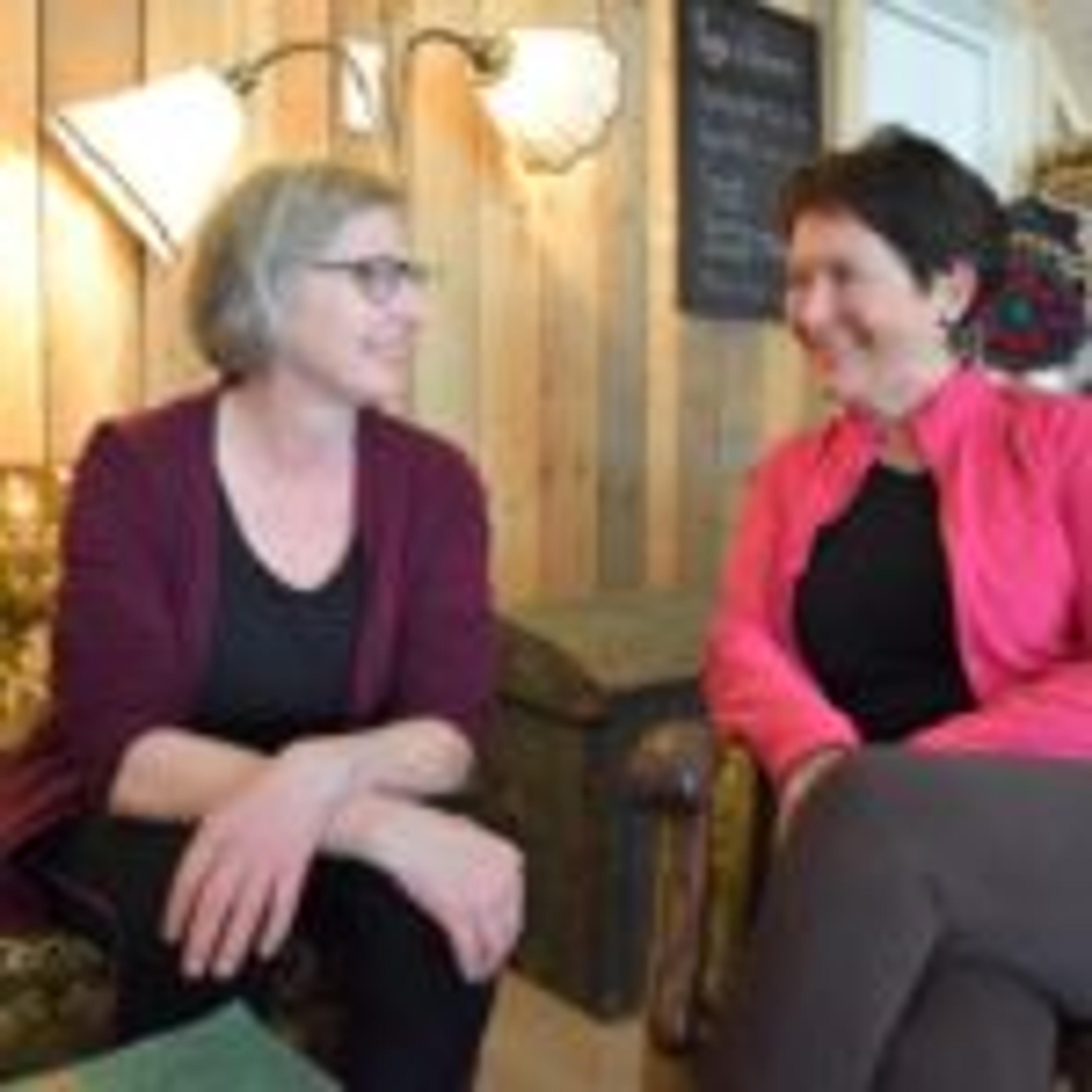 FINNER ROEN: – Et lunt pusterom, beskriver Elin Berg Schmidt (56) fra Ramnes og Bodil Undrum (63) fra Jare sine ukentlige besøk til Yoga-låven. Foto: Stian Ormestad.